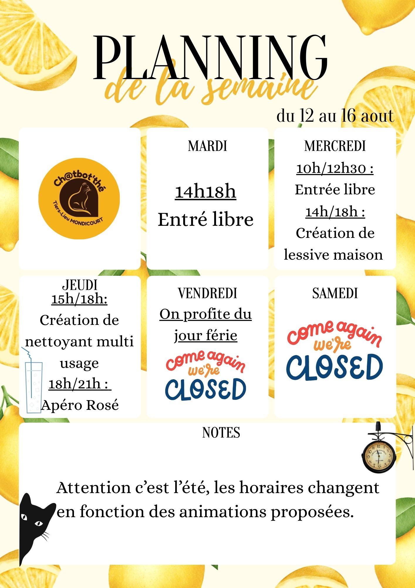Voici l'emploi du temps de la semaine du Ch@tbot'thé !